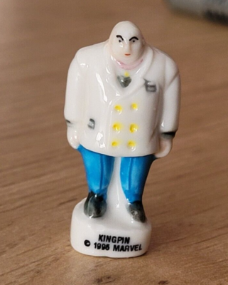 This is a small porcelain figure baked into a king’s cake for a French holiday called Epiphany. Feve translates to 'fava bean'. I believe the Kingpin one is from a Spider-Man line.