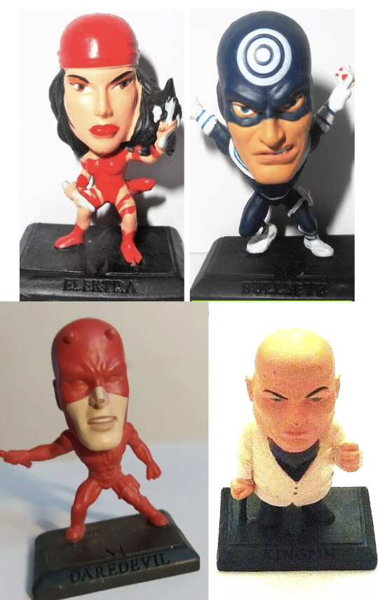 These bobblehead figures were available in Elektra, Bullseye, Kingpin and Daredevil variants and each came on a base with their name engraved.