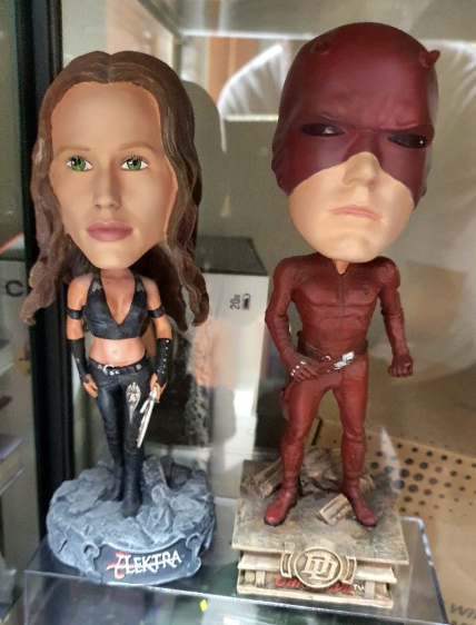 These bobblehead figures are based on Elektra and Daredevil from the Daredevil movie.