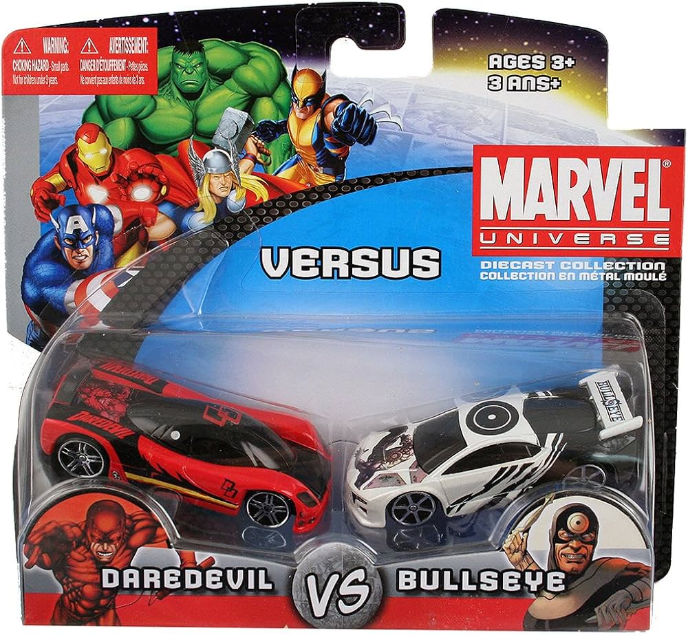 This is a set of Daredevil and Bullseye themed die-cast cars from a series of 'Versus' 2-packs.